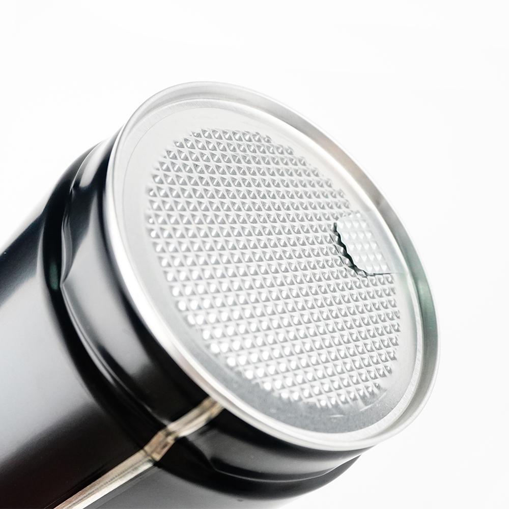 Couleur : noir avec couvercle doré et bord noir.